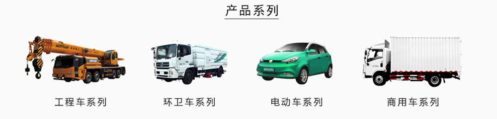 主要产品有四大系列:工程系列、环卫系列、纯电动专用和乘用系列、商用车系列。拥有160多个国家公告产品,1000多项自主知识产权专利技术。