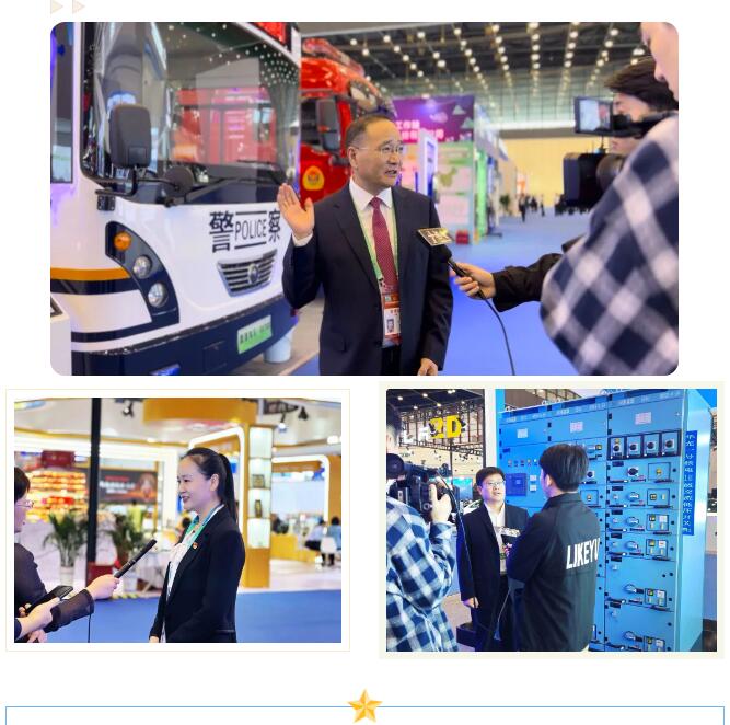 展会现场,集团副总裁陈西山、电气总经理助理崔晓科、新能源总经理孙艳芳分别接受河南民生频道大参考和许昌电视台采访。